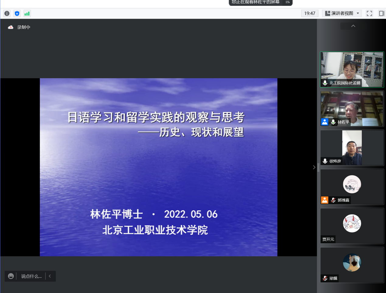 本次講座由原中國教育部中國教育國際交流協會常務理事、副秘書長和中日友好協會理事林佐平先生主講。