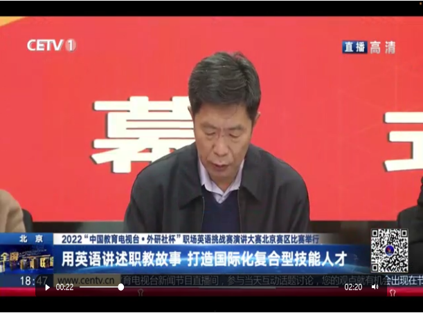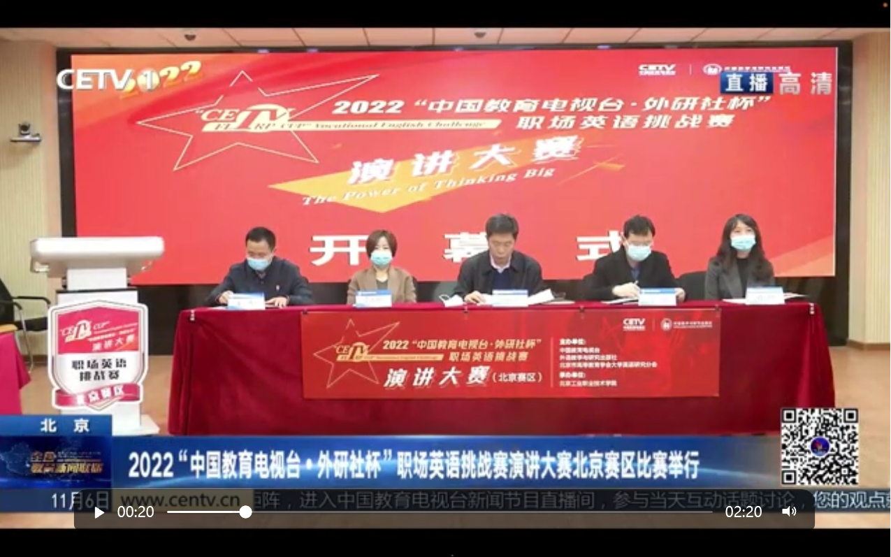 11月4日,2022“中國(guó)教育電視臺(tái)·外研社杯”職場(chǎng)英語(yǔ)挑戰(zhàn)賽演講大賽北京賽區(qū)比賽在我校順利舉辦。大賽采用“線上演講、線下評(píng)議”的方式進(jìn)行,來(lái)自北京地區(qū)18所院校的53名選手及指導(dǎo)教師參加了本次大賽。我校公共英語(yǔ)教研室的于天嬌老師指導(dǎo)無(wú)人機(jī)2071班張子文獲得一等獎(jiǎng),動(dòng)漫設(shè)計(jì)2233班劉昕羽和電子商務(wù)2231班任雙梅獲得三等獎(jiǎng)。