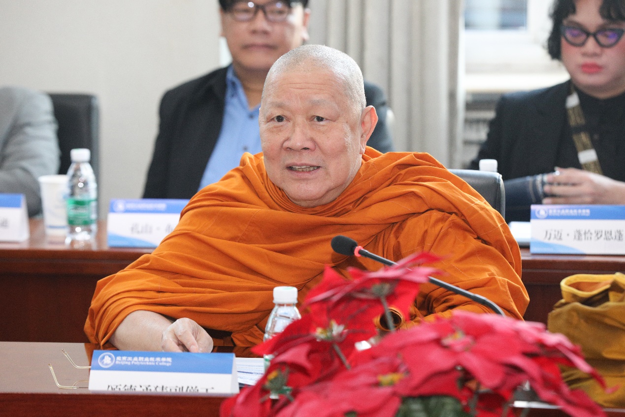 泰國(guó)頌德通猜副僧王介紹了泰國(guó)政府為職業(yè)教育改革和發(fā)展所做的努力。作為中泰語言與職業(yè)教育學(xué)院政策委員會(huì)主席,他長(zhǎng)期致力于中泰兩國(guó)國(guó)際中文教育及職業(yè)教育交流與合作,堅(jiān)持開拓中文教學(xué)創(chuàng)新之路,創(chuàng)辦了泰國(guó)岱密中學(xué)孔子課堂—全球首家孔子課堂。會(huì)上,他贊賞中國(guó)職業(yè)教育發(fā)展取得的成就,感謝中國(guó)教育部語合中心的大力支持,特別是語合中心任命謝麗杲院長(zhǎng)常駐泰國(guó),成為兩國(guó)職業(yè)教育發(fā)展與交流合作的重要基礎(chǔ)。頌德通猜副僧王高度評(píng)價(jià)此次訪華活動(dòng)和我校職業(yè)教育國(guó)際化取得的成就,表示“今天是中泰職業(yè)教育極其重要的一天”,此次訪華為兩國(guó)在職業(yè)教育領(lǐng)域開展師資交換、學(xué)歷互認(rèn)等深入合作提供寶貴的交流機(jī)會(huì)。展望未來,中泰一家親,攜手共同推動(dòng)兩國(guó)職業(yè)教育發(fā)展,服務(wù)“一帶一路”建設(shè)。