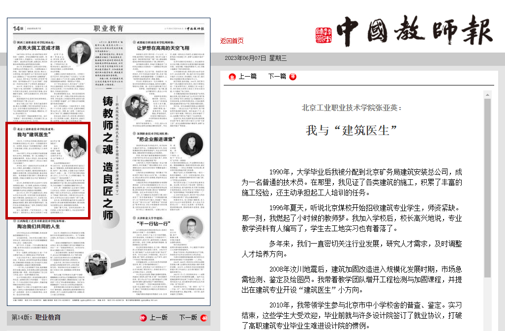 6月7日《中國教師報》以“鑄教師之魂造良匠之師”為題刊登職業(yè)院校優(yōu)秀教師代表在2023年全國巡回宣講會上的演講摘要。校張亞英老師受邀參加全國巡講,講述了她緊抓時代脈搏服務社會發(fā)展的奮斗故事?,F(xiàn)將文章中關于我校張亞英老師的事跡進行轉(zhuǎn)載,希望在全校掀起勞動光榮、技能寶貴、創(chuàng)造偉大的時代風尚。
