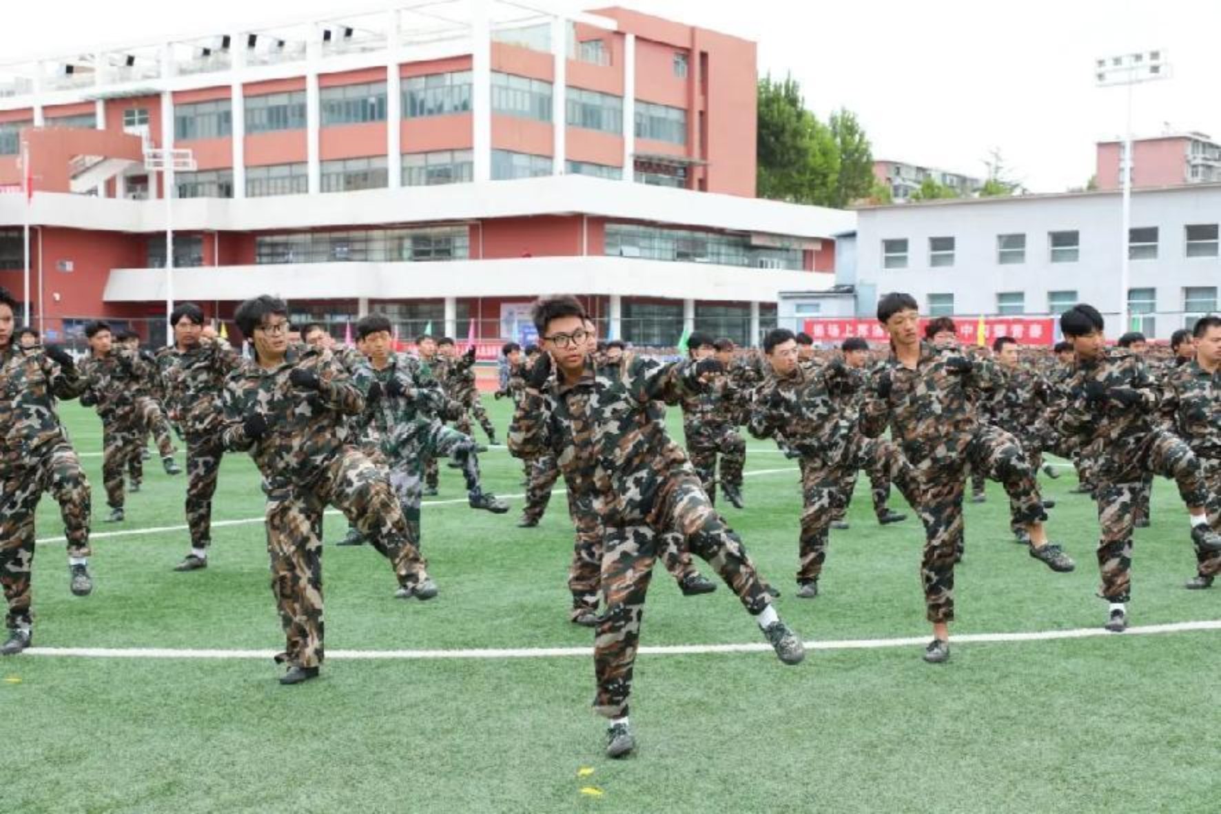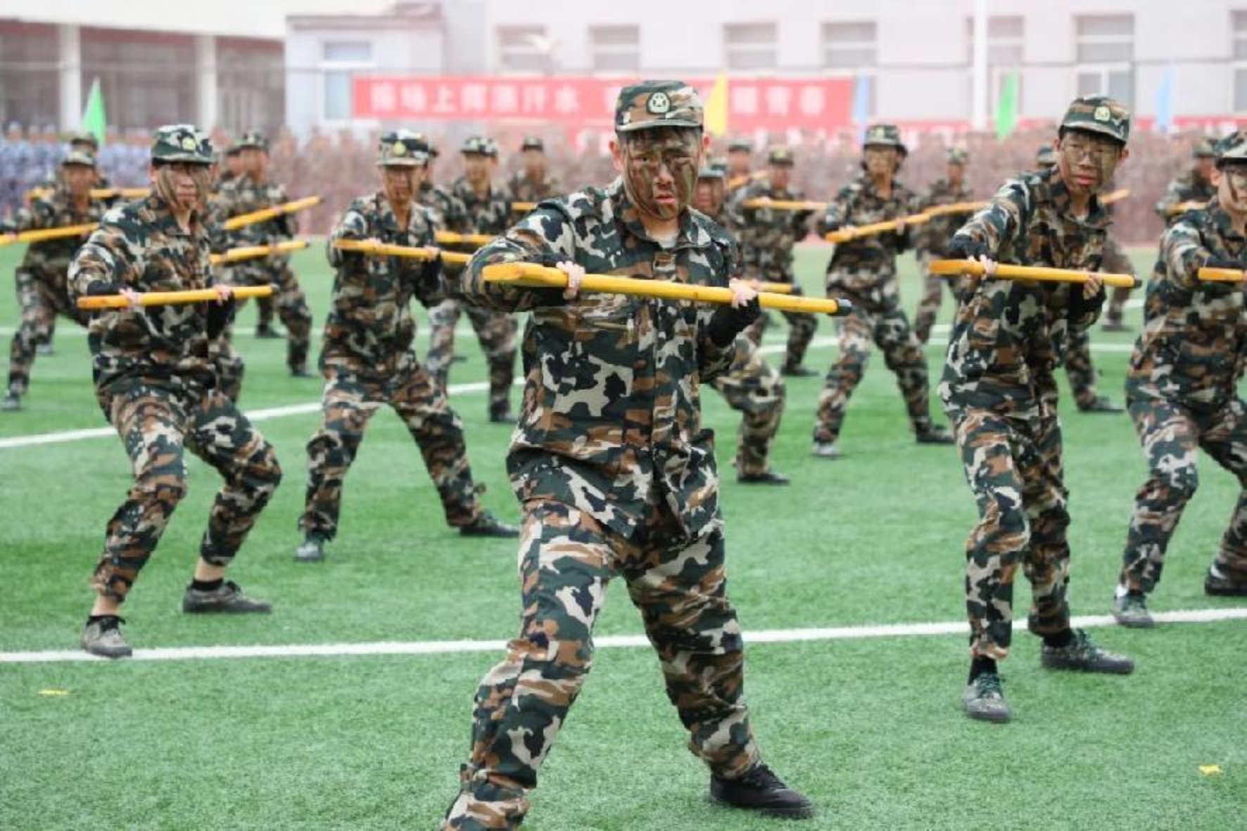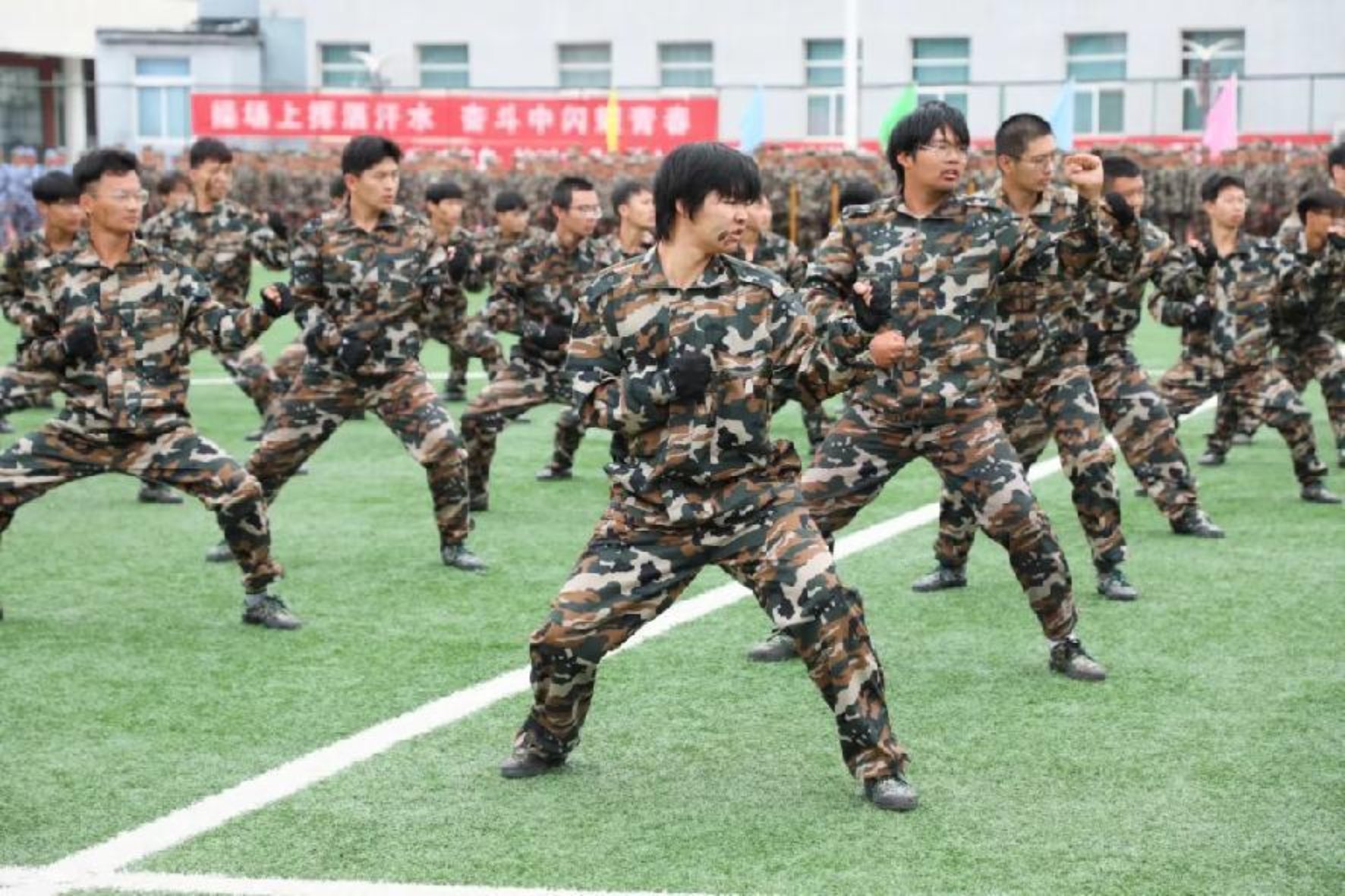隨后的軍訓成果展示環節,成為新生們展現軍事訓練風采的“高光時刻”。匕首操方陣動作利落、寒光映目,刺殺操方陣氣勢如虹、喊聲震場,擒敵拳表演剛勁有力、整齊劃一。壓軸的新生方隊檢閱環節,2025級新生方陣以飽滿的精神狀態、規范的動作姿態、邁著鏗鏘步伐依次通過主席臺,挺拔的軍姿、整齊的隊列、嘹亮的口號響徹操場,一步一動都彰顯著軍事訓練的扎實成效,贏得現場領導、師生與教官的陣陣掌聲,生動詮釋了北工院學子的堅毅品格與青春朝氣。