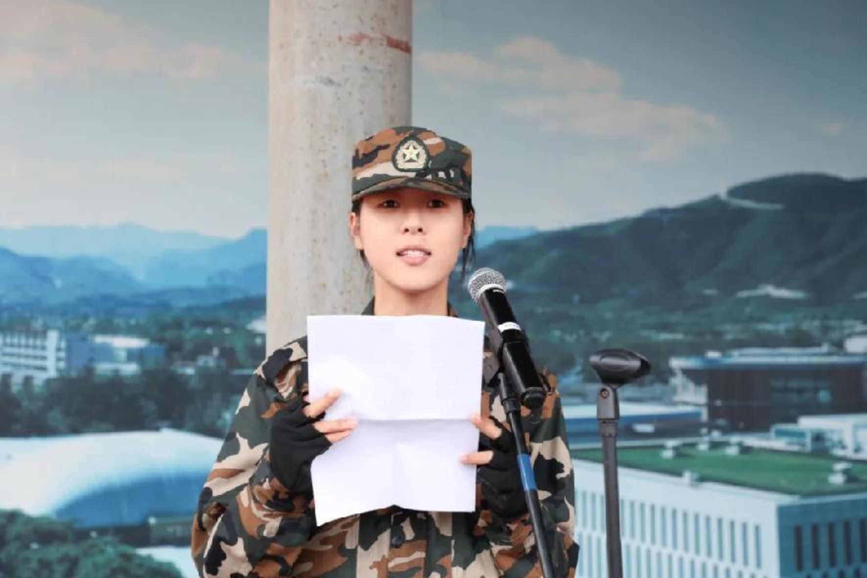 優秀學員代表趙晨羲上臺發言,她結合自身軍訓經歷,分享了在軍訓中的成長感悟,動情講述了與戰友并肩堅持、在汗水中收獲意志的難忘時光,并代表全體2025級新生鄭重表態:將把軍訓中淬煉的紀律意識、拼搏精神、集體觀念融入未來校園生活,以更昂揚的姿態迎接學業挑戰。