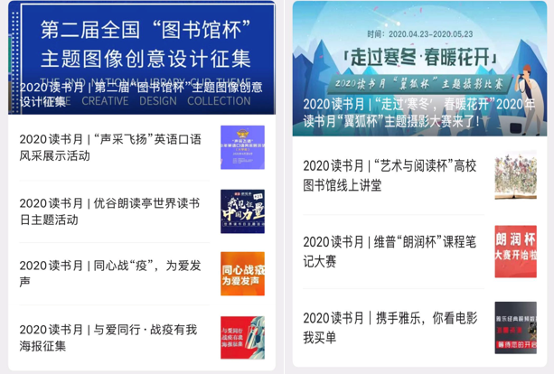 疫情發生以來,圖書館高度重視,積極響應疫情防控工作。上半年圖書館全館上下牢記初心使命,以師生為本、統一部署、分工負責,全力以赴保障疫情阻斷與資源服務兩不誤,加強與數據庫供應商的溝通和協商,以線上服務保障全校師生在疫情防控期間的教學、科研和學習。同時,充分發揮微信公眾號、到夢空間等平臺在傳播知識、開展活動等方面的宣傳作用,開展文化活動,做到了“閉館不閉網,線上服務不打烊”的工作舉措。