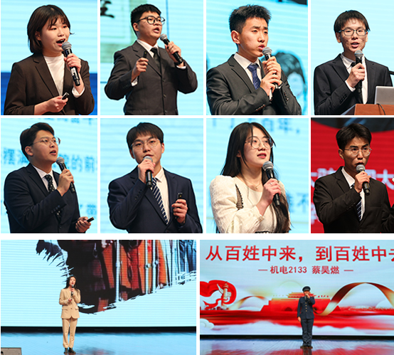 本次匯報會由榮獲“2021年思政課實踐教學成果一等獎”的10組同學現場匯報實踐成果。實踐成果包含了家國情懷、使命擔當、致敬英雄、文化傳承、國際關系、經濟發展、志愿服務等主題,真情抒發了同學們的所觀、所思、所感、所悟,表達了同學們的愛國情、報國志、強國行,引發了現場觀眾的強烈共鳴。十組作品分別為:機電2133班蔡昊燃同學的“從百姓中來,到百姓中去”;會計2032班趙茜茜、薛嬌、駱嘉祎同學的“長臂管轄到底有多長”;造價1871班李博同學的“內卷的社會我們是否應該躺平”;建工2031班劉宇軒同學的“我的志愿生涯”;機電2033班屈紀杰同學的“從國貨崛起看創新力量”;無人機2031班李子豪同學的“新時代英雄說—袁隆平”;造價2033班鮑乾坤、王艷青同學的“從義烏跨境電商看中國電商未來”;無人機2031班宋佳琳同學的“認清棉花謬論,拒絕美帝陰謀”;裝飾2031班李欣悅同學的“大國擔當—紀念新中國恢復聯合國合法席位50周年”;電子2031班要鵬宇同學的“我的國,我最愛的祖國”。