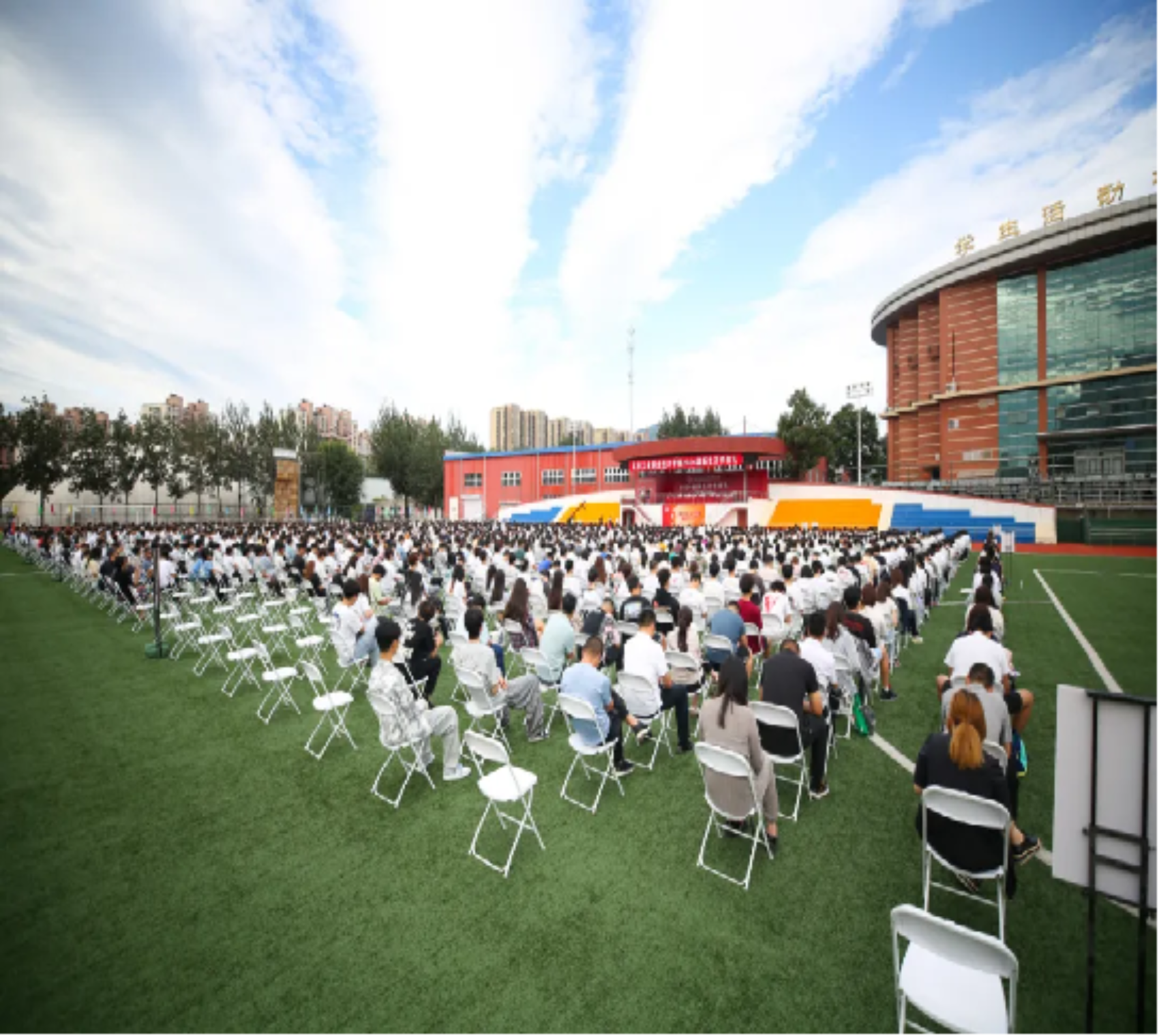 全體起立,奏國歌”,上午8時30分,開學典禮在雄壯國歌聲中拉開帷幕。歌聲在綠茵場上飄揚,家國情在心中厚植。
