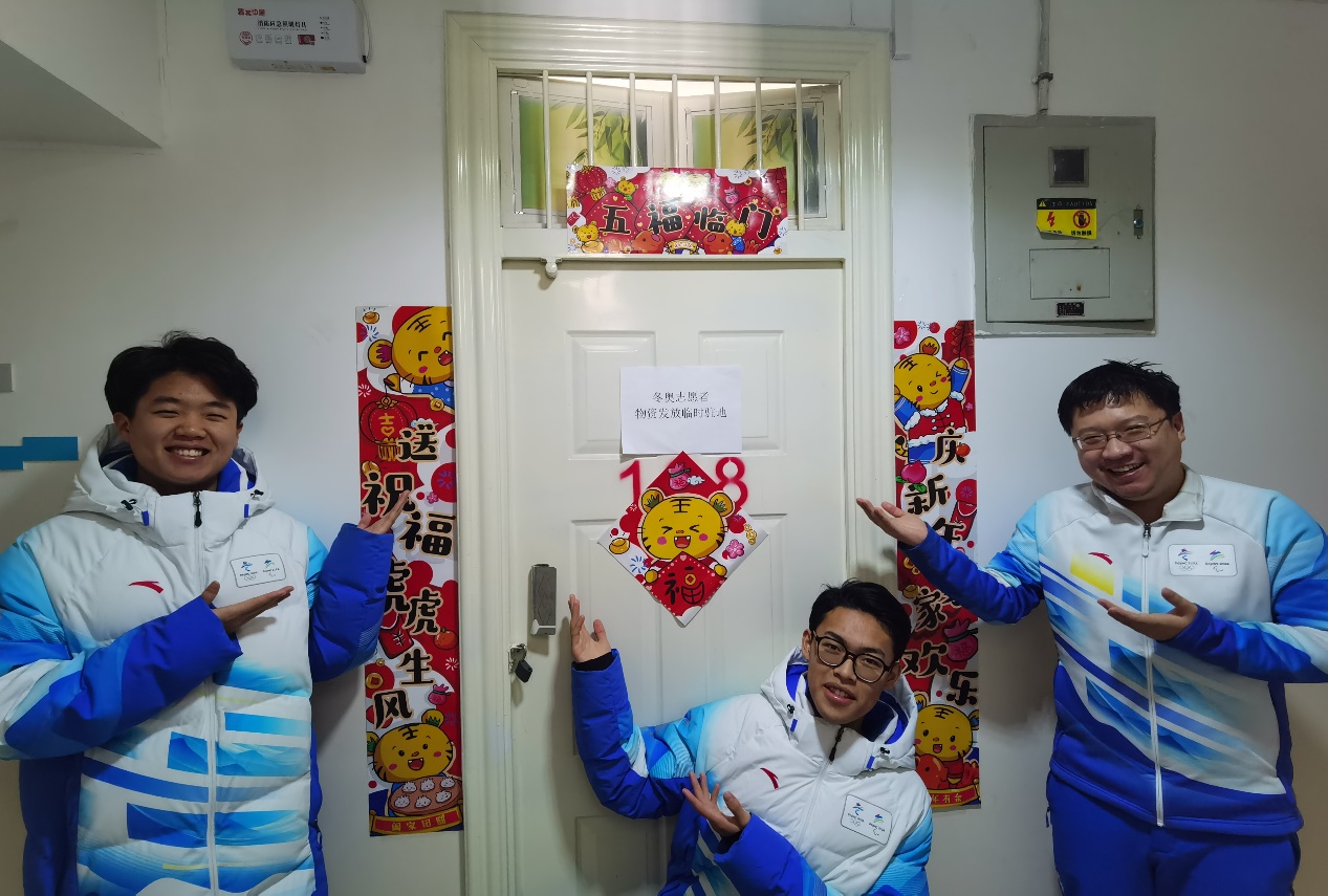 2022年春節對全體賽會志愿者來說是即難忘又有意義的,為了服務保障冬奧,他們很多人第一次離開家人在學校集體過年。除夕當天,黨委書記高喜軍、校長安江英、黨委副書記魏曉東一行在學校看望志愿者,為志愿者及其家人送上新春祝福。校領導、相關職能部門負責人和志愿者們一起“瑞雪迎冬奧、熱鬧過大年”,大家一起貼春聯、包餃子、吃年夜飯、看春晚,濃厚的冬奧、春節氛圍,讓志愿者倍感溫暖。