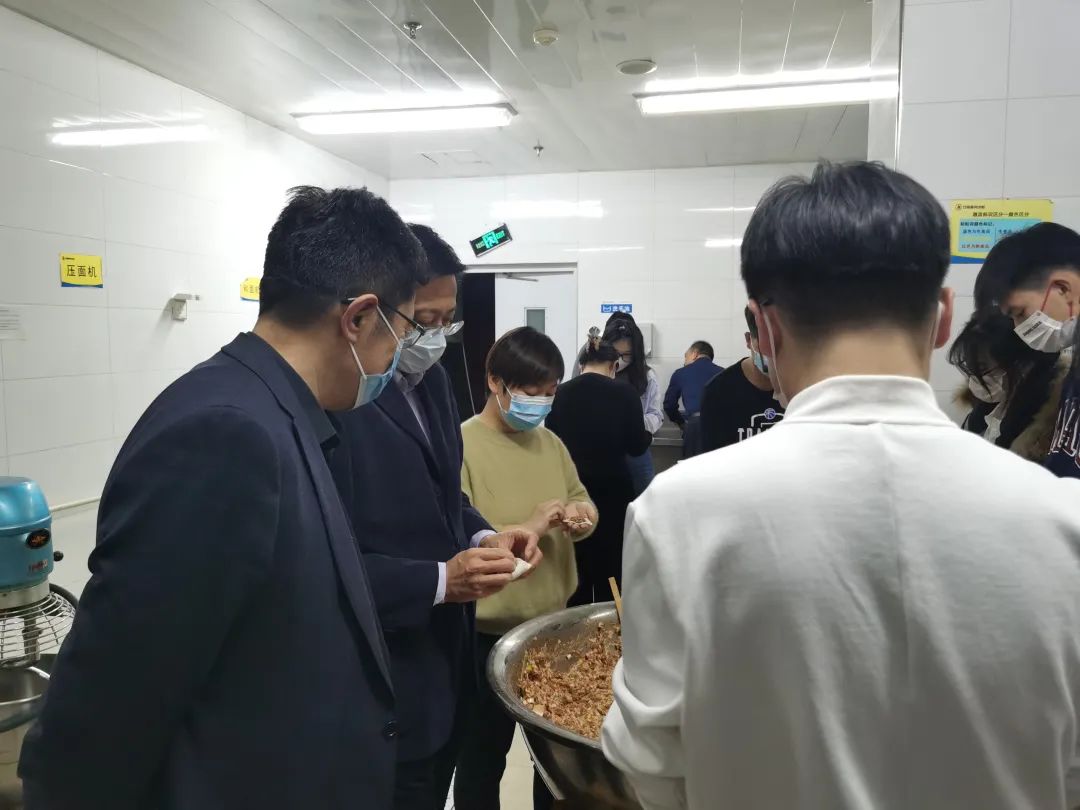 校領導與志愿者們一起包餃子