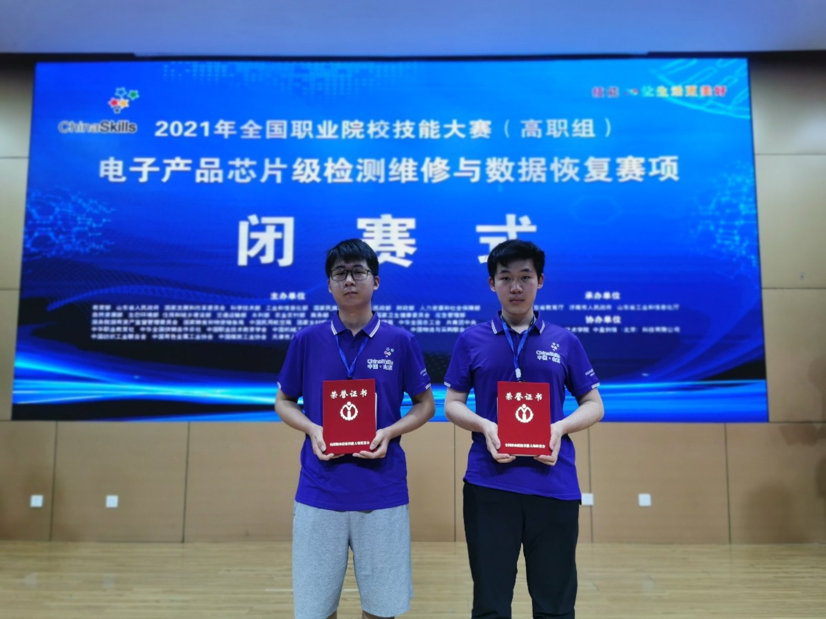 2021年6月4日至6月5日全國職業院校技能大賽高職組“電子產品檢測維修與數據恢復”賽項,6月8日至6月10日“云計算”賽項分別在山東濟南舉行。來自全國多所高職院校的優秀選手,代表各自省、自治區、直轄市參加了比賽。我校電信學院代表北京市組隊出征參加了兩個賽事,經過激烈角逐,最終電子信息專業趙子銳、韓申2名學生喜獲電子產品檢測維修與數據恢復賽項全國二等獎,網絡技術專業學生劉若檀喜獲云計算賽項全國三等獎。