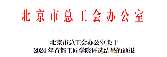 近日,北京市總工會公布了2024年首都工匠學院評選結果,我校成功入選首都工匠學院。
