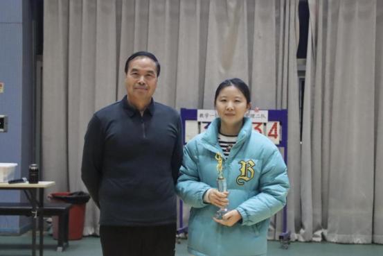 體育部直屬黨支部書記、體育部主任梁賦為團體亞軍管理二隊女隊頒獎