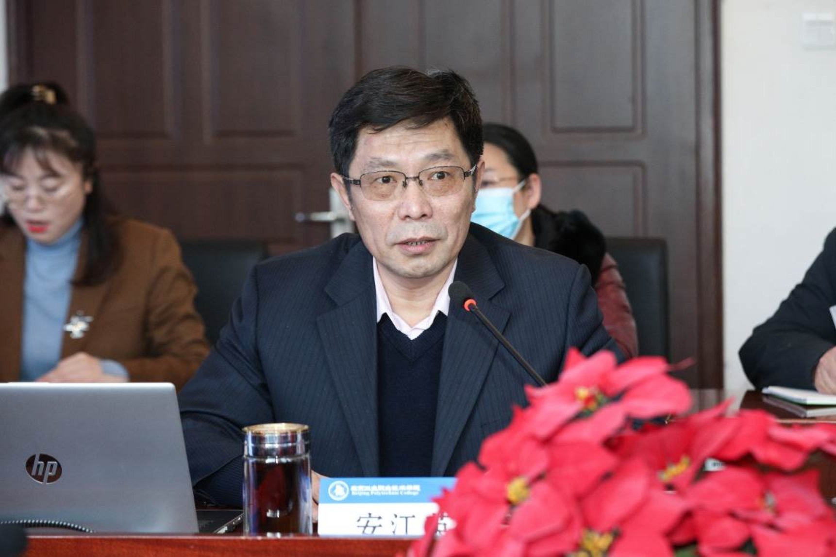 座談會上,安江英院長介紹了學校的基本情況、事業發展情況和今后工作思路。重點匯報了學校在產教融合、教師隊伍建設、教學能力大賽、國際化合作等方面取得的成績,并匯報了面臨的問題和挑戰。