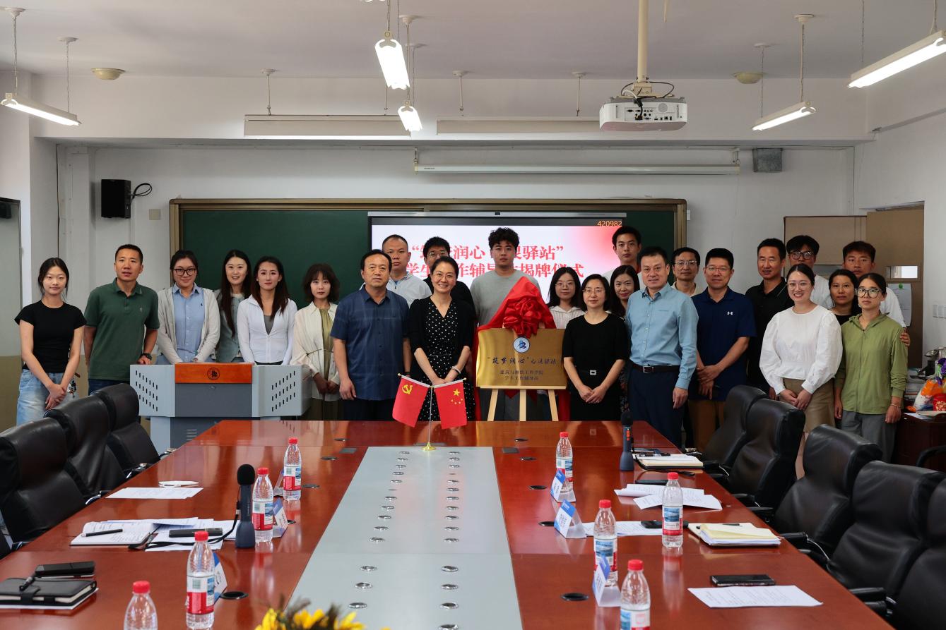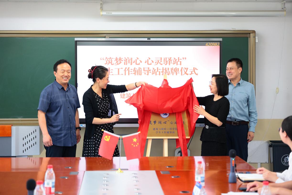 2025年6月6日上午,建筑與測繪工程學院“筑夢潤心 心靈驛站”學生工作輔導站揭牌儀式在善技樓舉行,黨委常委、副院長沈瑩出席并為輔導站揭牌。