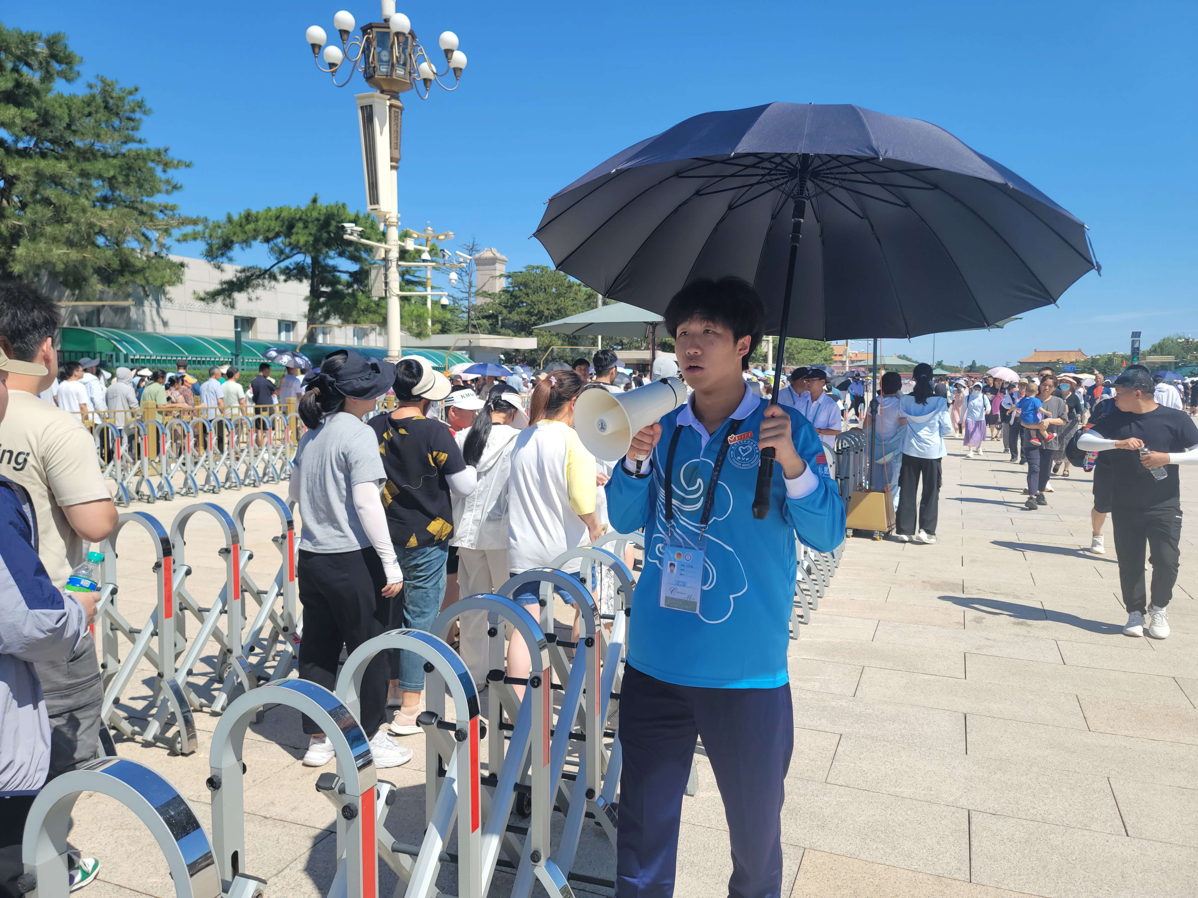 隨著大暑臨近,北京連日高溫,戶外開啟“炙烤模式”,烈日下的天安門廣場(chǎng)地表溫度持續(xù)升高,志愿者們緊張而有序地在團(tuán)隊(duì)預(yù)約崗提供預(yù)約幫助,耐心負(fù)責(zé),答疑解惑,在扶老助殘崗幫助群眾上下樓梯,在外圍崗指引群眾,不畏酷暑,堅(jiān)守崗位,引導(dǎo)大家有序瞻。