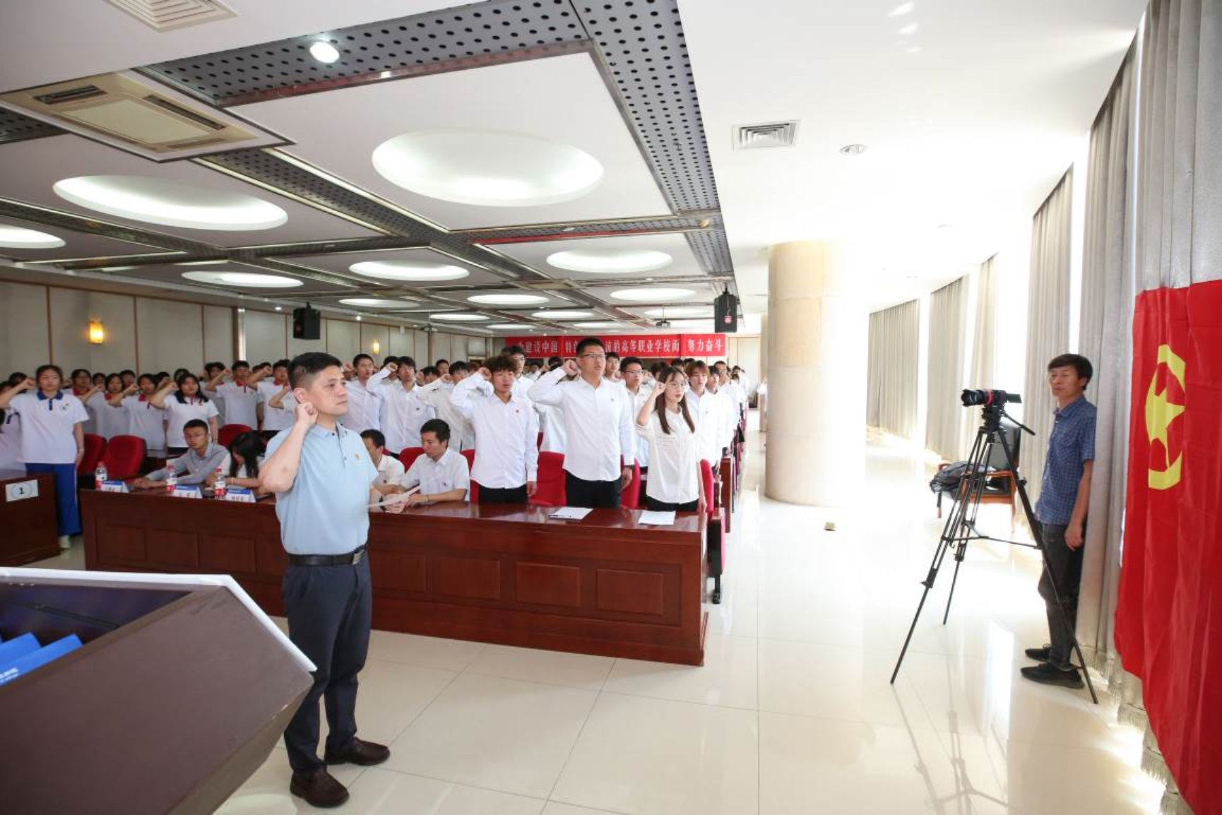 2023年6月12日,我校舉辦新團員入團宣誓大會,黨委常委、副院長沈瑩,團委書記鄭興,各二級學院黨總支書記和團總支書記參加此次大會。本次大會由校團委副書記趙萌主持。