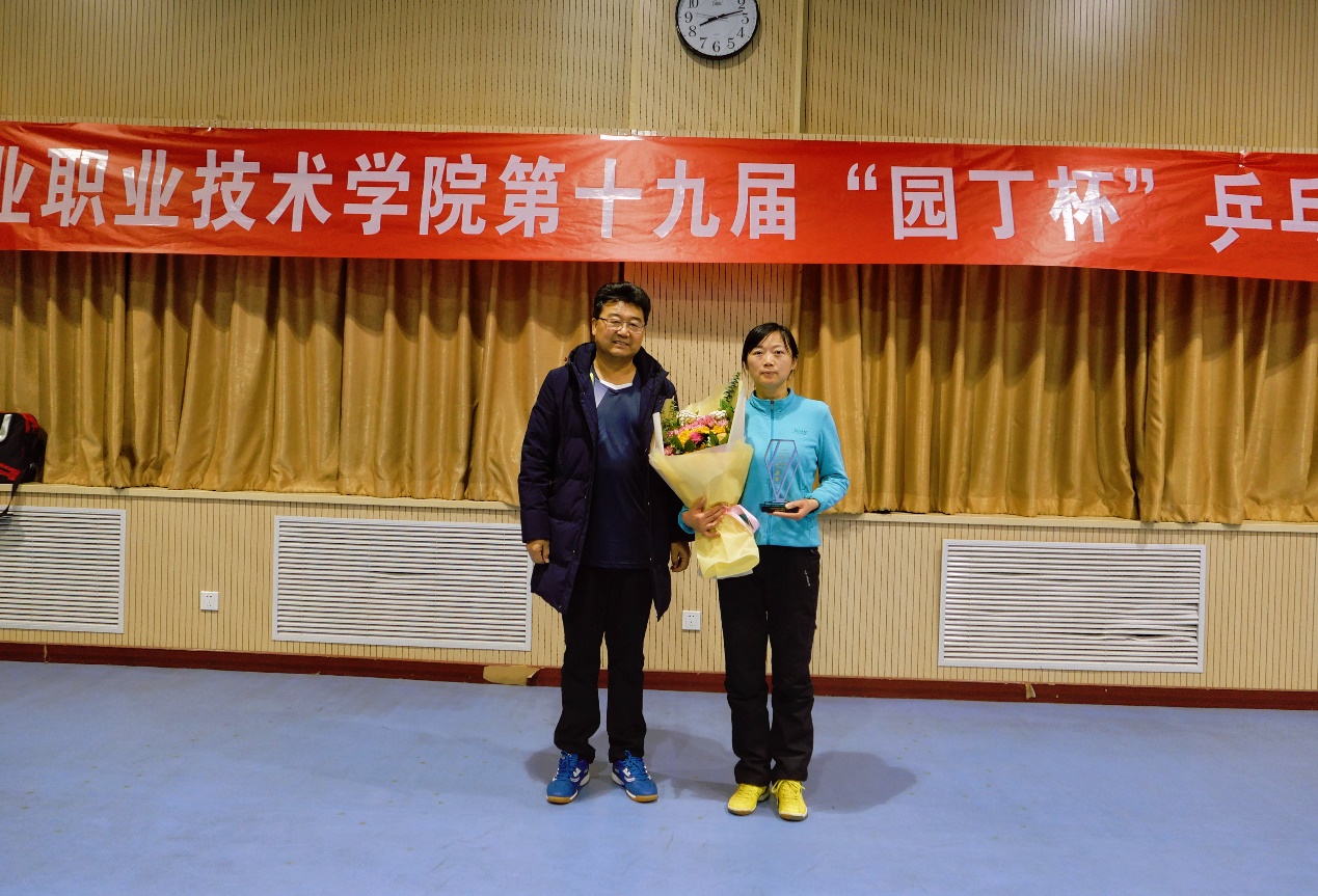 黨委副書記、院長安江英為女子單打比賽冠軍頒獎(jiǎng)