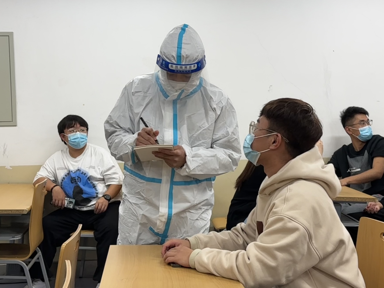 11月9日晚自習時,志愿者們提前進入演練教室為演練做好準備。晚上8:00活動正式開始,應急演練主要模擬了工作人員按照要求對學生進行身份核驗、體溫檢測、信息登記等,以及在不同場景下學生出現體溫異常時,學院疫情防控工作小組全過程處置流程。其次還模擬了流調工作,流調信息包括:收集個人信息、校外活動軌跡、返校方式以及重點描述校內活動軌跡等四個方面。演練全程志愿者均嚴格做好自身疫情防控措施。