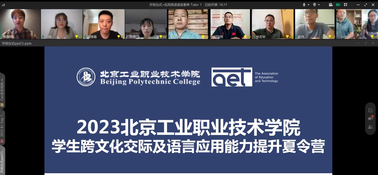 7月14日下午,2023年北工院雙高建設-學生跨文化交際及語言應用能力提升夏令營于線上順利開營。本次夏令營為期7天,來自機電工程學院、建筑與測繪工程學院、信息工程學院、文法與管理學院以及基礎教育學院5個學院50名優秀學生共同參加了此次夏令營。開營儀式由英國教育科技協會卡斯·維德斯霍文博士、我校國際交流合作處處長孟晴致辭。機電工程學院副書記張琳,建筑與測繪工程學院副書記任長順,信息工程學院副書記劉同師,文法與管理學院副書記林忠華,基礎教育學院副書記史偉,以及英國教育科技協會課程與培訓總監管昊、商務總監劉新泉等共同出席了本次夏令營開營儀式,開營儀式由我校國際處郭濰嘉老師主持。