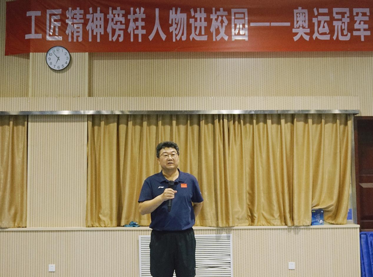 高世吉代表全體師生員工熱烈歡迎丁寧前來指導交流;勉勵師生多向奧運冠軍學習奧運精神、乒乓球技戰術、比賽經驗等;希望各分會比賽隊員都能夠在本次“園丁杯”乒乓球比賽中取得優異成績。