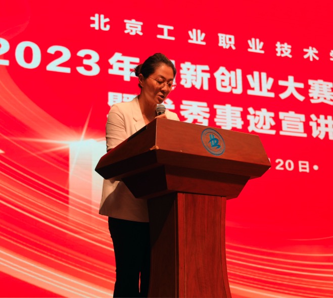 校黨委常委、副院長沈瑩宣讀表彰決定。她在表彰中提到2023年,在學校黨委的高度重視下,我校在各級創新創業大賽中都取得了優異成績,為學校創新創業教育工作做出了積極的貢獻,涌現出了一批成績突出的創新創業項目及團隊,在“青創北京”2023年“挑戰杯”首都大學生課外學術科技作品競賽榮獲特等獎2項;一等獎3項;二等獎9項;三等獎17項。第九屆中國國際“互聯網+”大學生創新創業大賽北京賽區比賽榮獲一等獎7項;二等獎5項;三等獎16項。第二屆“京彩大創”北京大學生創新創業大賽榮獲一等獎2項;二等獎2項;三等獎4項。并對受表彰的創新創業團隊和同學提出要求,希望大家珍惜榮譽、戒驕戒躁、奮發進取、再創佳績。同時希望全校廣大團員青年以受表彰的團隊和同學為榜樣,刻苦學習專業知識、爭做品學兼優的創新創業者,為建設特色鮮明世界一流的高等職業學院而努力奮斗。