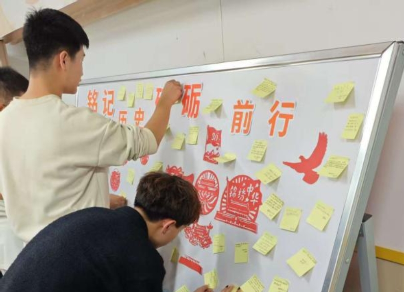 建筑與測繪工程學院“青春寄語新時代”留言活動中,同學們執(zhí)筆寫下赤子之心,讓留言墻成為凝聚報國之志的生動載體;文法與管理學院在觀影后組織觀后感書寫,推動愛國主義精神內(nèi)化于心、外化于行。