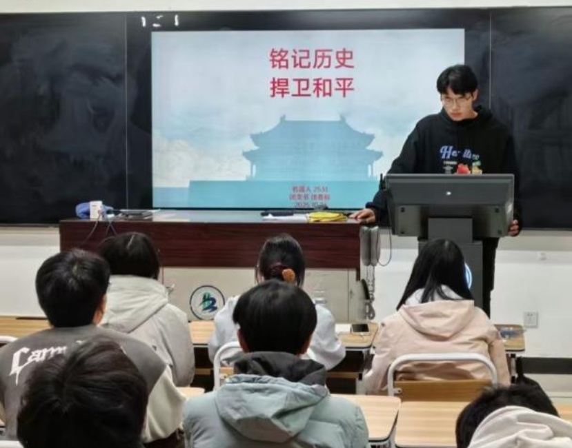 機電工程學院在主題團日活動中,組織各班級深入學習習近平總書記在紀念中國人民抗日戰(zhàn)爭暨世界反法西斯戰(zhàn)爭勝利80周年大會上的重要講話精神,圍繞抗戰(zhàn)精神展開討論;在新中國成立76周年之際,組織各支部學習《中華人民共和國愛國主義教育法》,結(jié)合革命先烈事跡與時代楷模案例,幫助學生理解“愛國是公民根本責任”的深刻內(nèi)涵。