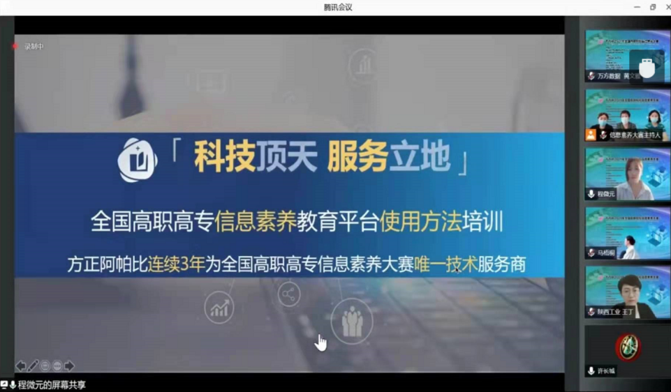 為了能讓參賽師生無障礙參加比賽,北大方正阿帕比技術(shù)有限公司程微元經(jīng)理對(duì)全國高職高專信息素養(yǎng)教育平臺(tái)的使用和功能進(jìn)行了培訓(xùn),詳細(xì)講解了平臺(tái)使用的各個(gè)流程和環(huán)節(jié),為參賽師生學(xué)習(xí)和競賽做好充分的保障工作。