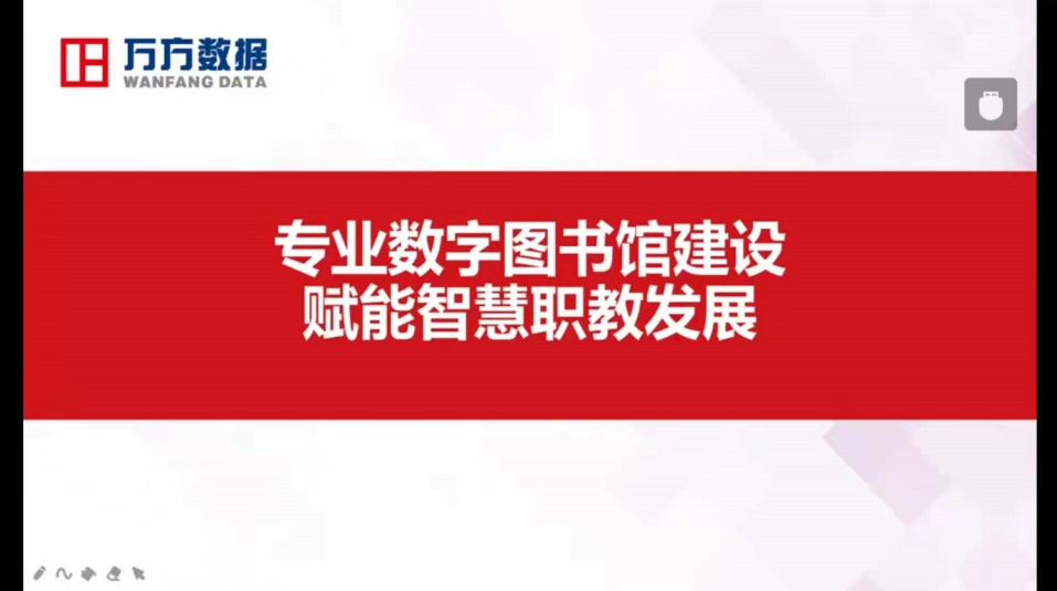 新技術(shù)新產(chǎn)業(yè)的迅速發(fā)展,督促我們高職院校的教育趨向于智慧職教轉(zhuǎn)變,如何運(yùn)用數(shù)字圖書館為高職教育做好知識(shí)服務(wù),是當(dāng)下迫切需要提升的問題,會(huì)議邀請(qǐng)北京萬方數(shù)據(jù)股份有限公司黃文雅經(jīng)理給大家?guī)硪粓觥秾I(yè)數(shù)字圖書館建設(shè)賦能智慧職教發(fā)展》分享報(bào)告。