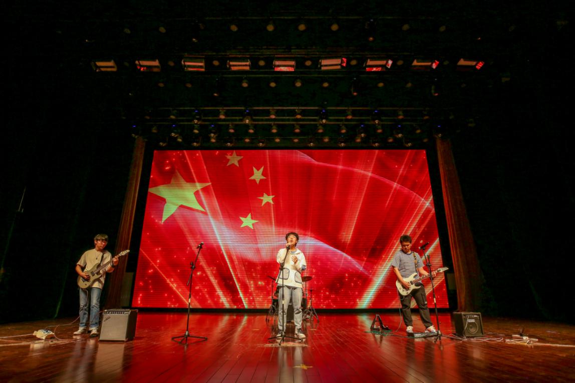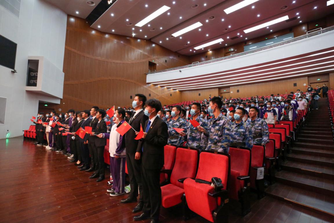 全場師生一起唱響《沒有共產黨就沒有新中國》