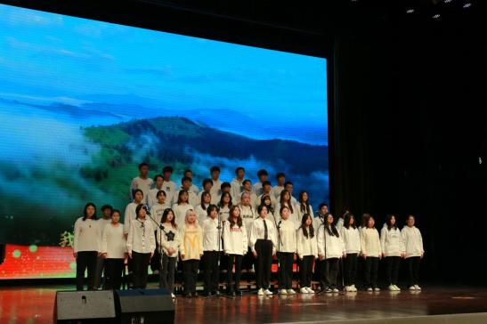文法與管理學院合唱團演唱歌曲《在燦爛的陽光下》、《走向復興》