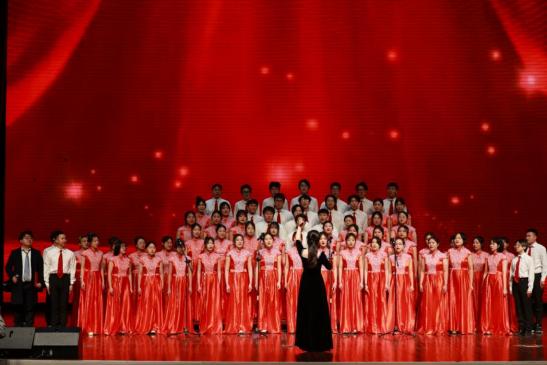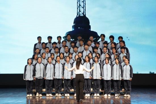 校“夢”之聲合唱團演唱歌曲《燈火里的中國》、《龍的傳人》
