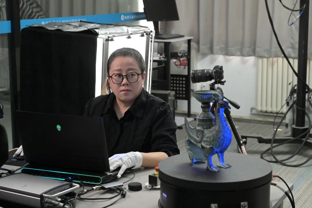 為文物拍攝360°無死角的全身照,再使用掃描儀獲得三維空間數據,然后嫻熟地操縱鼠標,把照片和數據進行融合處理,平面圖案在電腦屏幕中逐漸變成三維立體式,讓人足不出戶就能遠程觀看文物的原貌,這就是第三屆北京大工匠、北京工業職業技術學院副教授楊曉雪的工作——文物數字化。