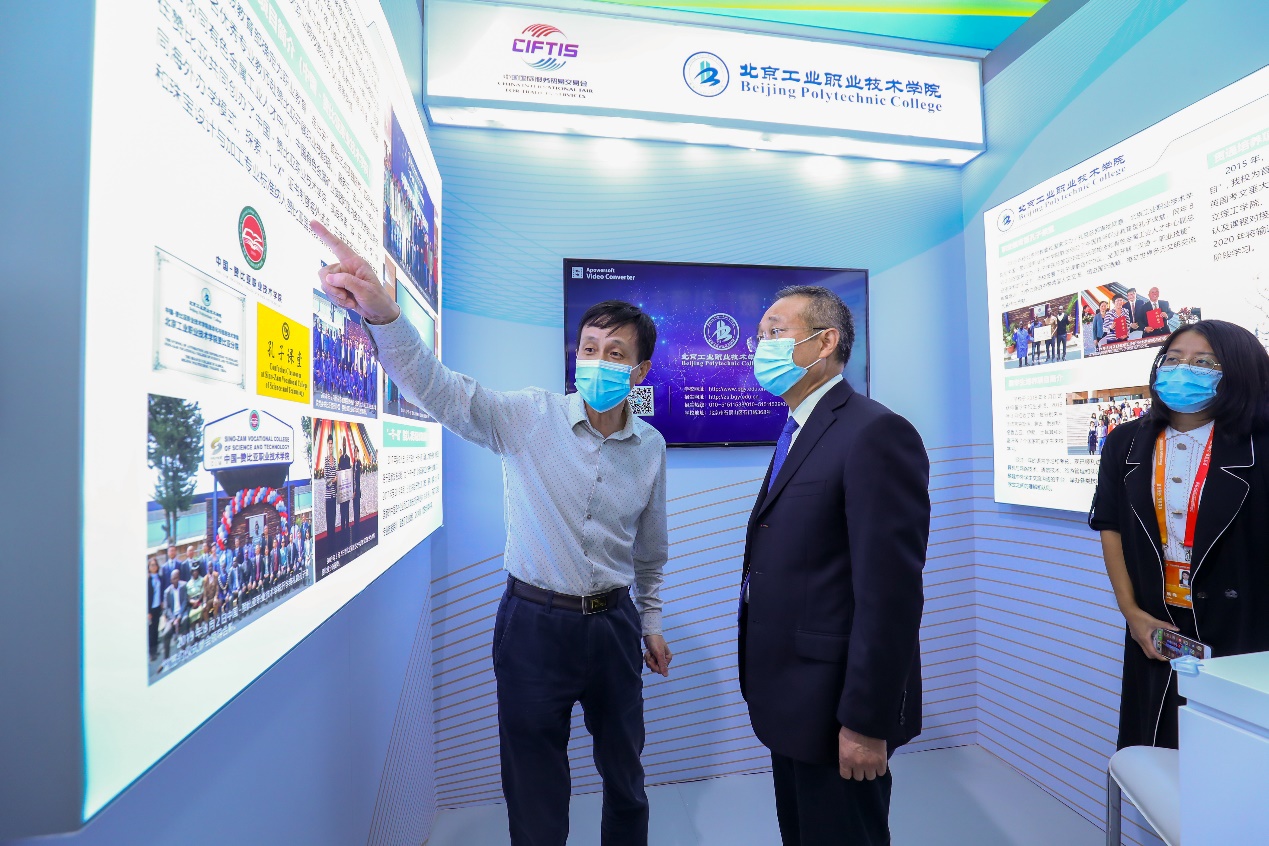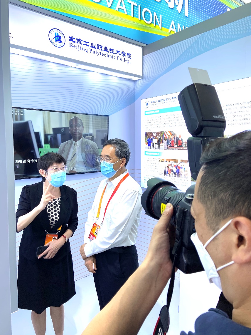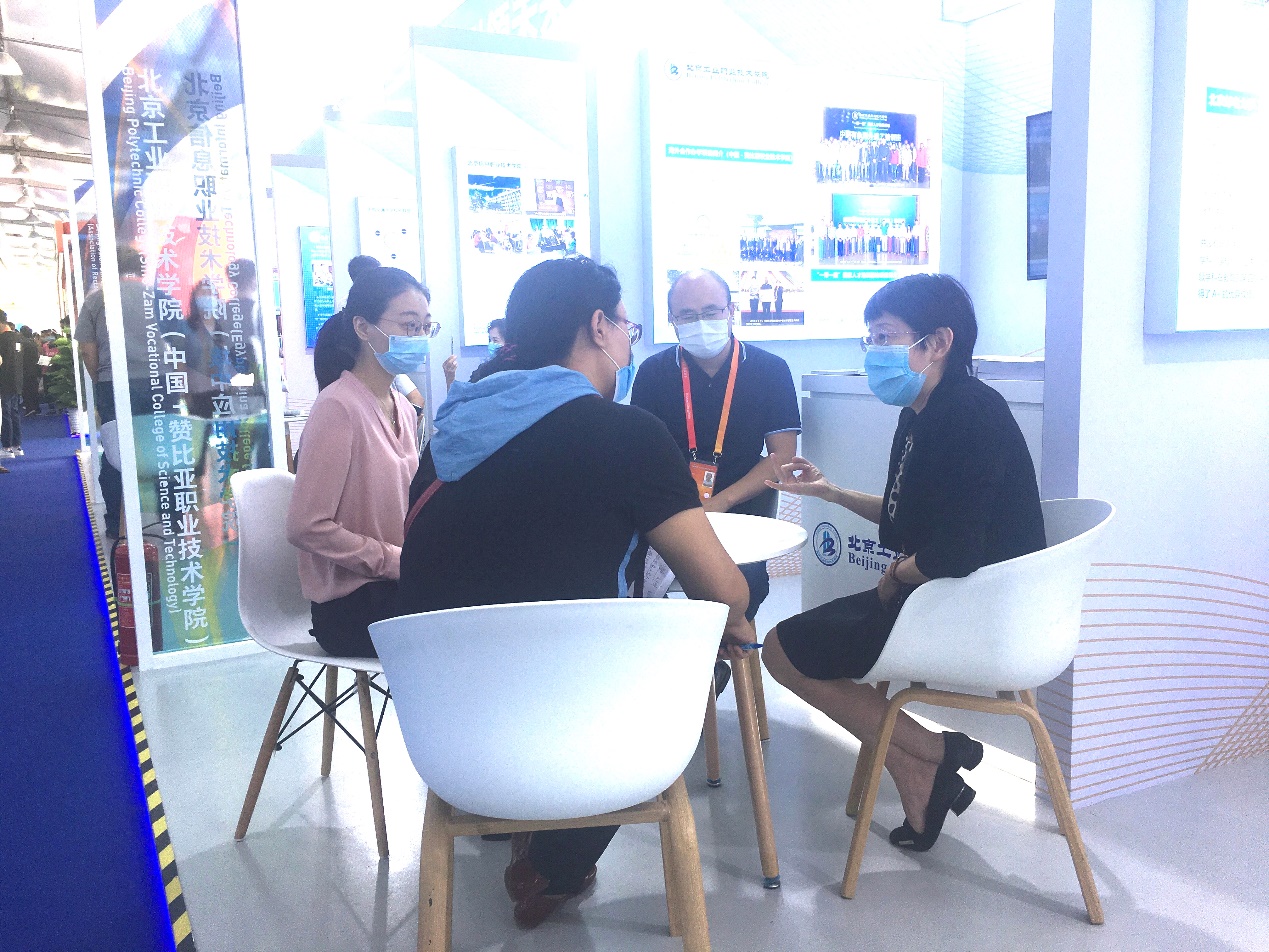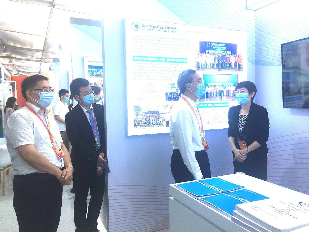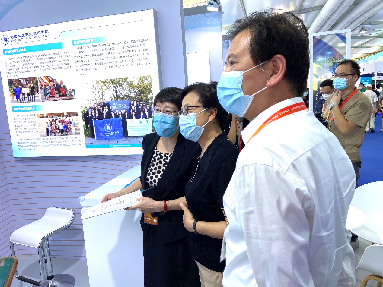 我校參加此次服貿會教育專題展也得到了各級領導的高度關注,原教育部副部長、中國職業技術教育學會會長魯昕、北京市副市長張家明、市委教育工委常務副書記鄭吉春、北京市教育委員會主任劉宇輝、市委教育工委紀檢組組長王文生、市教委一級巡視員黃侃、市教委副主任溫濤、北京市國際教育交流中心主任谷天剛等多位領導,在展會期間先后蒞臨我校展位觀展指導,詳細聽取我校領導的講解匯報,對我校在職業教育領域開展國際教育服務的創新舉措和成果給予了充分肯定和高度認可。