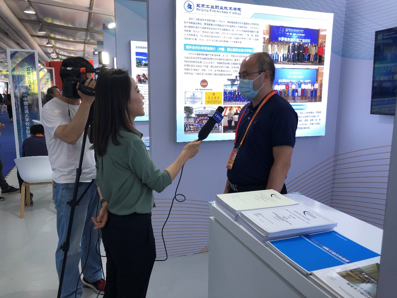 參展期間,我校的國際化辦學成果展示也受到了國內多家主流媒體的關注,中國教育電視臺、人民日報社人民網等媒體都對我校展臺進行了專題采訪和報道。