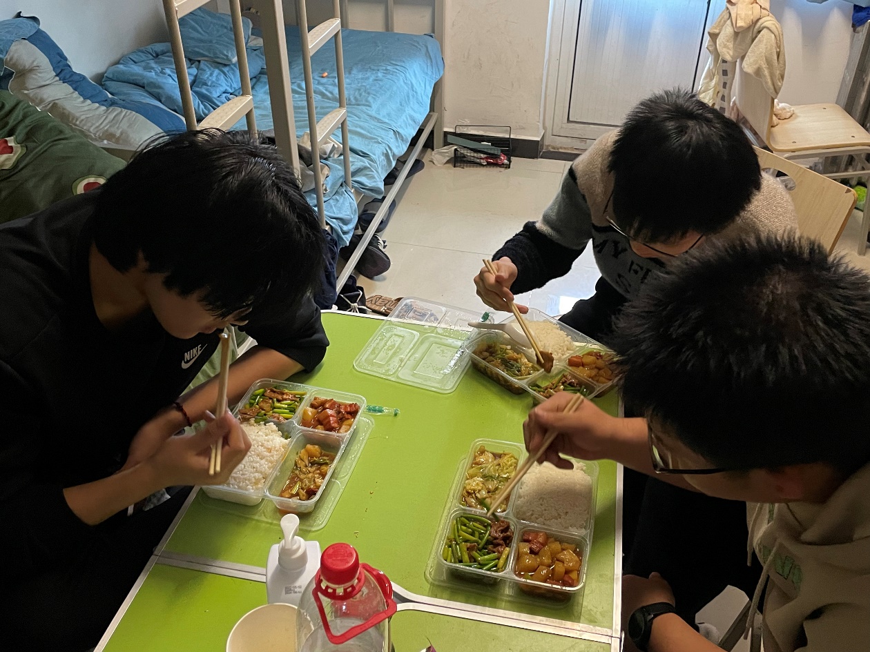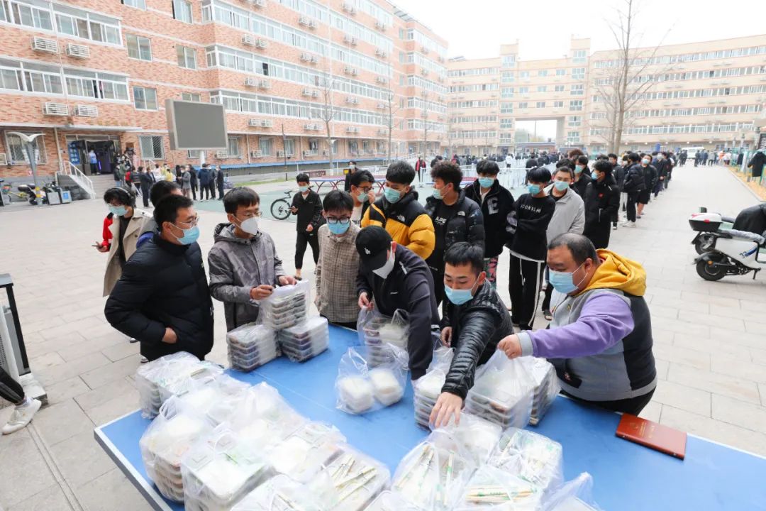 配發餐食、組織核酸、物資發放......輔導員、班主任、志愿者們第一時間入住公寓,確保每層配備一名輔導員,與同學們一同吃住,24小時值班值守,安慰鼓勵同學們維護校內防疫秩序。