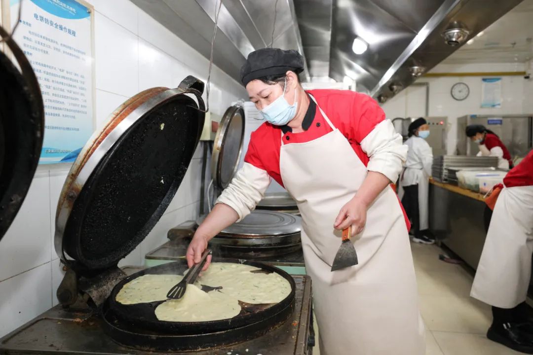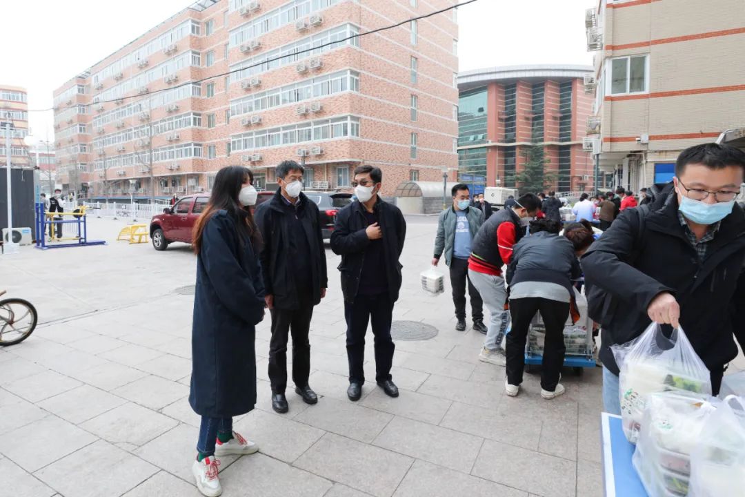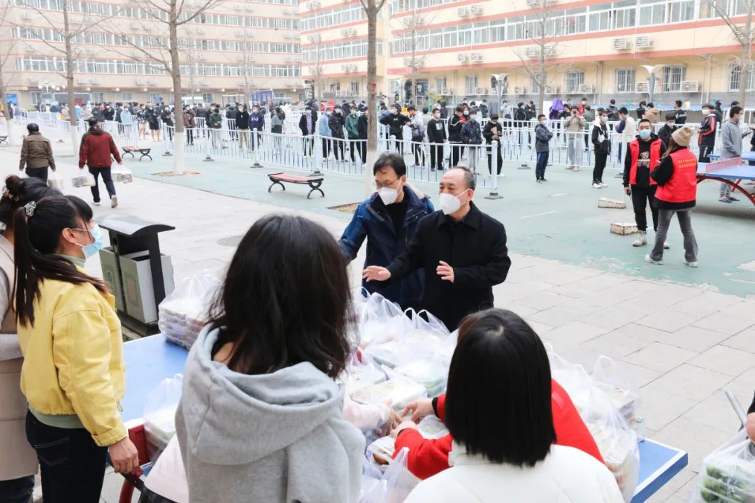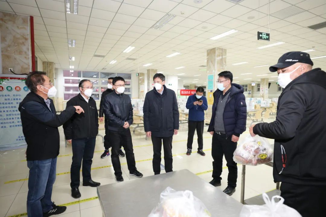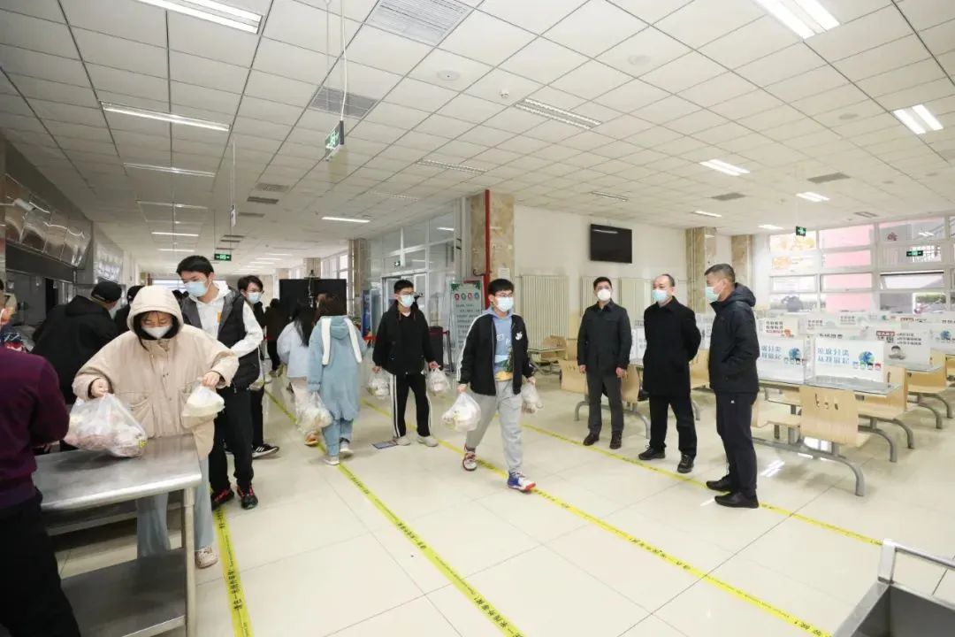 18日清晨,校黨委書記高喜軍,黨委副書記、院長安江英和學校領導班子到學校食堂、學生公寓等各點位進行現場調度。