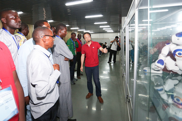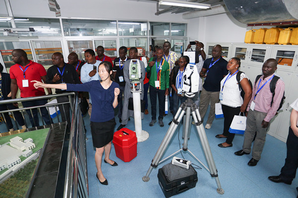 隨后,在校領導的陪同下,非洲國家青年領袖代表團一行參觀了我校圖書館、禮堂、體育館等基礎配套設施以及部分實訓室。建筑與測繪工程學院朱爽老師對我校無人機數據處理中心、地質測量中心以及攝影測量實訓室進行了介紹。機電學院王會、楊曉雪、李林琛老師就汽車實訓基地、逆向與3D打印對外技術服務中心、智能機器人技術服務中心進行了詳細講解。非洲國家青年領袖代表團對我校的辦學環境、辦學特色給予一致好評,并表達了中非友好合作、共同進步的美好愿望。