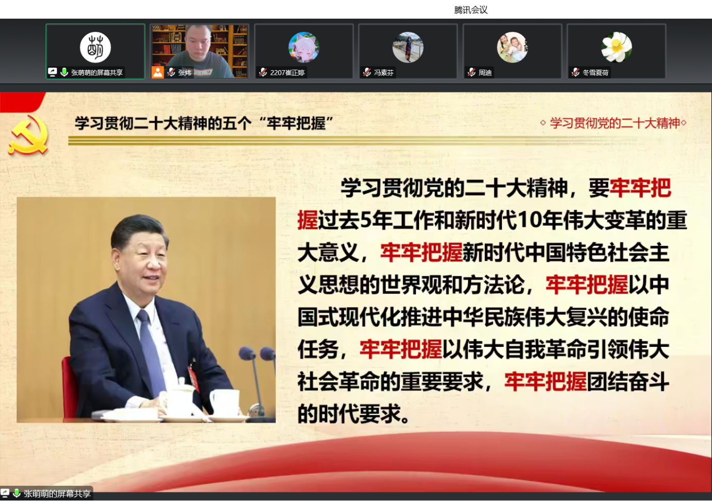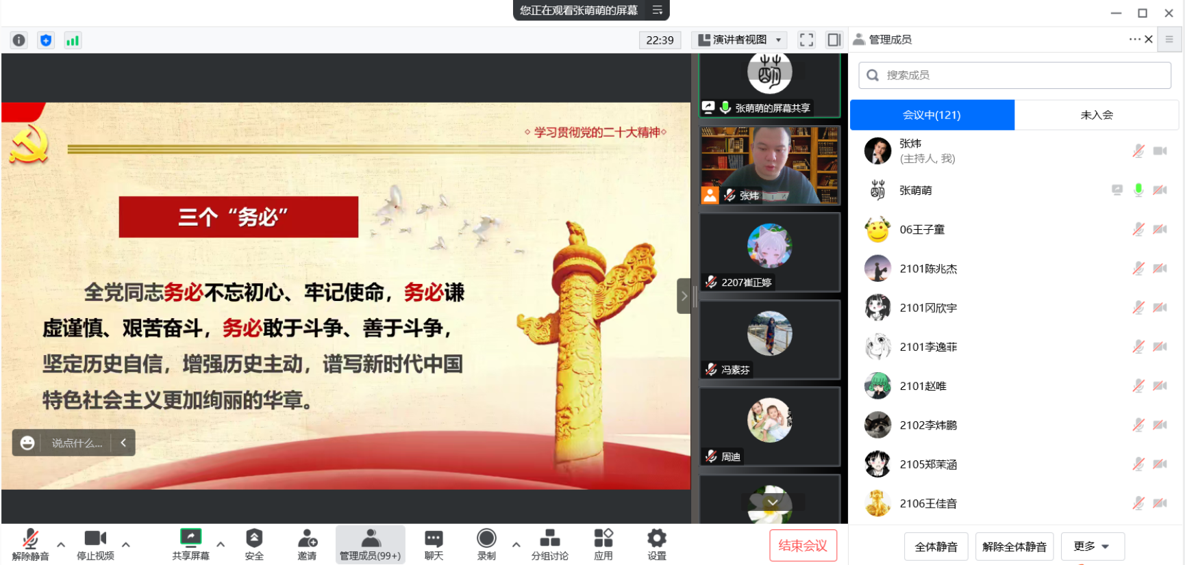 為進一步推進學習宣傳貫徹黨的二十大精神,促進學校高質量發展,加快建設高水平高職院校,12月30日上午9:30學校紀委書記張萌萌教授作了題為《學深悟透黨的二十大精神 奮力走好新時代新征程》的專題報告,基礎教育學院的全體教職工及學生干部共計120余人參加了本次宣講會。宣講會通過騰訊會議進行。