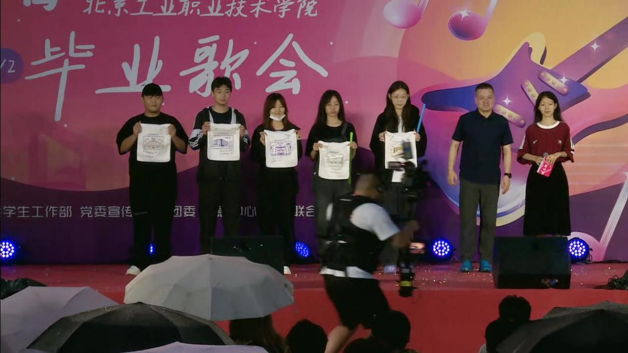 校黨委常委、副院長沈瑩抽取現場5名幸運觀眾,為大家頒發北工院“落日畢業歌會”周邊,并送上溫情畢業祝福。