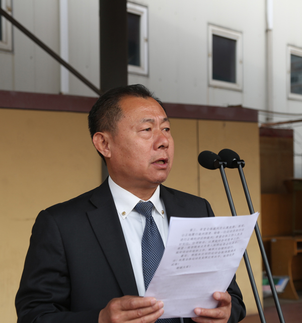 校長陳建民致開幕詞。他代表學校對運動會的順利召開表示熱烈的祝賀;向為本次運動會付出辛勤勞動的教職員工和同學們表示衷心的感謝;向參加運動會的裁判員、教練員、運動員致以崇高的敬意!
