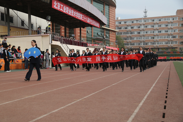 在莊嚴的升旗儀式后,黨委書記王偉宣布:北京工業職業技術學院第38屆田徑運動會開幕。