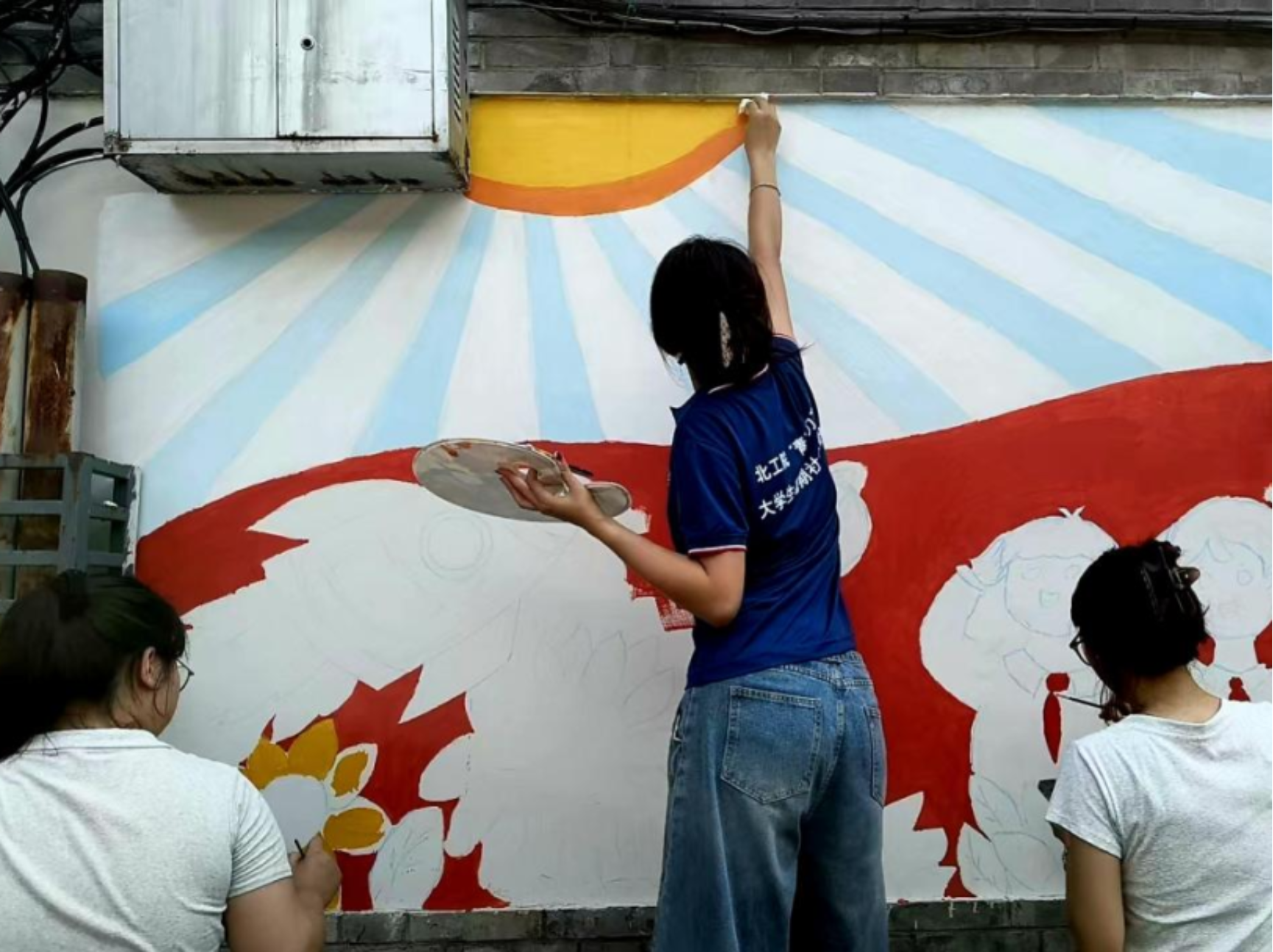 建筑與測繪工程學院“繪青筑夢”實踐團二分隊聚焦北京中軸線文化保護與社區服務,走進西四北胡同調研歷史文脈,在古代建筑博物館擔任志愿講解員,向游客普及古建知識;針對胡同通學路墻面單調問題,策劃并完成“童心向黨”主題墻繪,為老胡同注入青春活力,實現文化傳承與社區美化的有機結合。