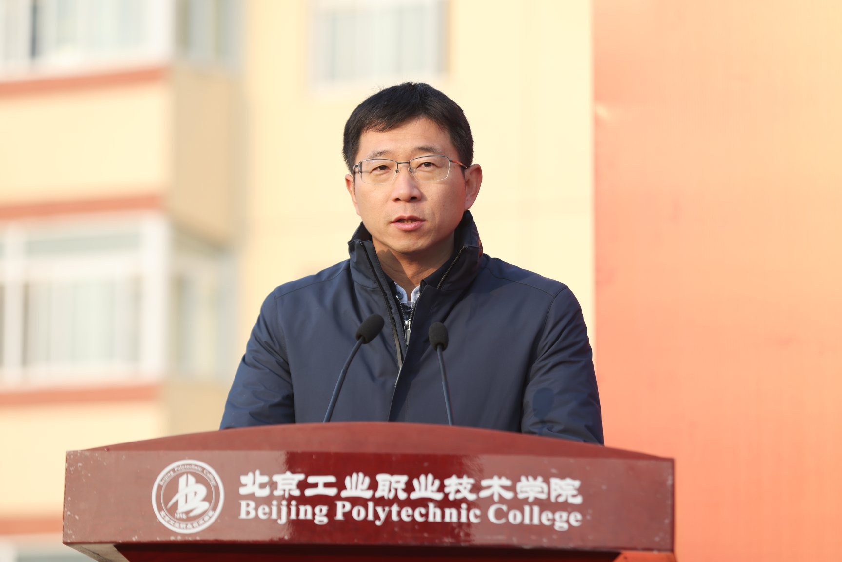 11月12日上午8時,北京工業(yè)職業(yè)技術(shù)學院五號學生公寓建設項目開工動員會舉行。北京市教育委員會二級巡視員張鳳華,門頭溝區(qū)人民政府副區(qū)長馬超鷹,北京市教育委員會基建處副處長劉洪濤,北京建工集團有限責任公司黨委副書記張軍,校黨委書記田紅芳等領導出席會議,黨委副書記、校長柳長安主持開工動員會。
