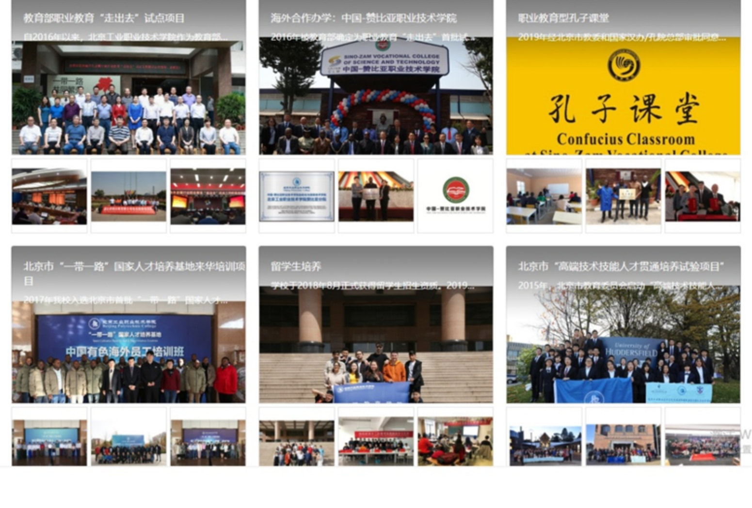 “中國-贊比亞職業(yè)技術(shù)學(xué)院”成立也是我校深度參與職業(yè)教育改革發(fā)展,服務(wù)“一帶一路” 建設(shè),提升國際化辦學(xué)水平的重要成果之一。2016年北京工業(yè)職業(yè)技術(shù)學(xué)院被教育部確定為職業(yè)教育“走出去”項(xiàng)目首批試點(diǎn)院校,2017年入選北京市首批“一帶一路”國家人才培養(yǎng)基地。學(xué)校以此為契機(jī),開創(chuàng)了一條以服務(wù)國家“一帶一路”建設(shè)為導(dǎo)向,以職業(yè)院校配合企業(yè)走出去為載體,將“走出去”與“引進(jìn)來”相結(jié)合的國際化辦學(xué)之路。