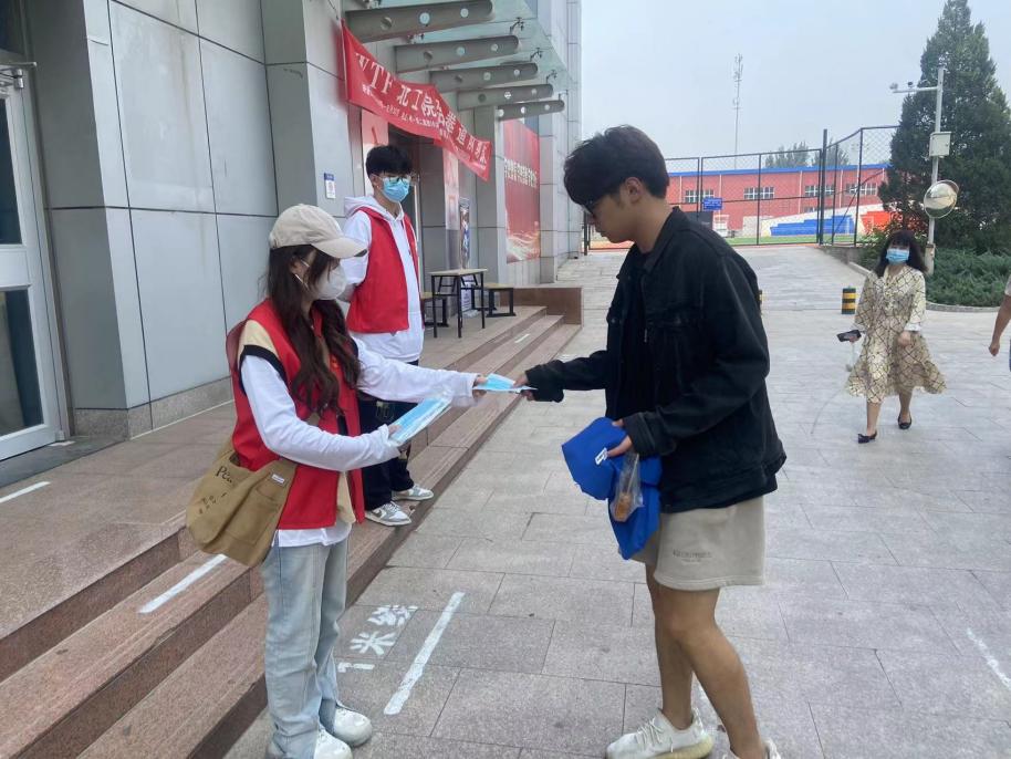 為加強防疫科學知識的普及宣傳,志愿者們深入宿舍,宣傳疫情防控的政策、常識、形勢,提醒同學們注意防護,按時做好核酸檢測,非必要不外出,如有發燒等情況立即上報,北工院志愿者用“志愿紅”傳遞溫暖與力量,成為校園最美的風景。