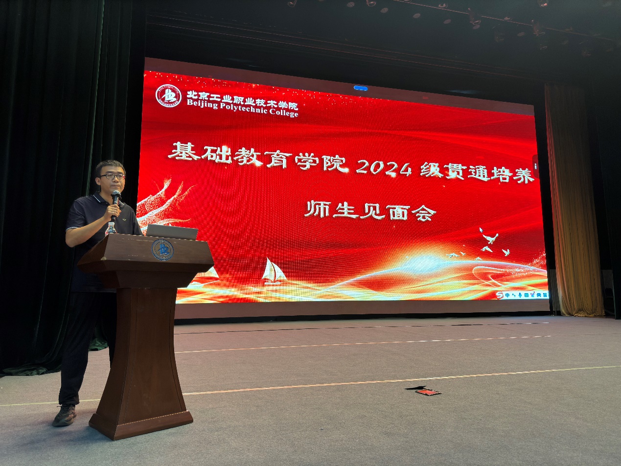 為貫徹落實立德樹人根本任務,做好新生的入學教育工作,基礎教育學院在圖書館禮堂舉行了2024級貫通培養師生見面會。學院黨總支副書記史偉上臺致辭,對新生的到來表示熱烈歡迎,同時對學院的辦學理念和學科特色進行了介紹。最后對新生提出了殷切期望,愿新生們在北工院的學習中勇往直前,超越自我,創造屬于自己的精彩人生。