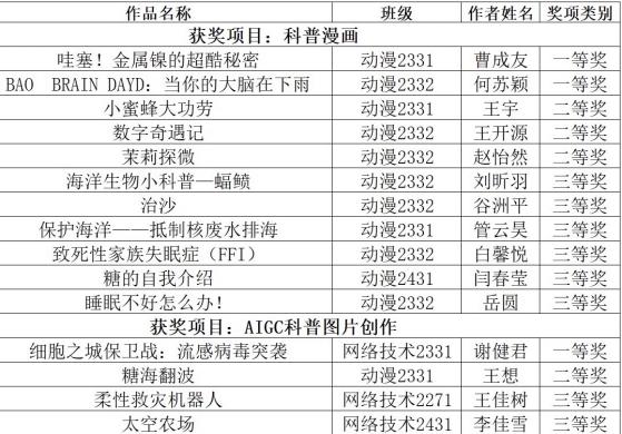 此次大賽吸引了首鋼技師學院、北方工業大學等多所院校參與,征集作品超400部。最終,我校師生作品因“科技熱點與公眾需求結合緊密、藝術表達與知識傳播平衡精準”脫穎而出,多部作品入圍獲獎名單。信息工程學院憑借高效的組織動員能力、高質量的作品產出及對科普工作的深度推動,榮獲大賽“優秀組織獎”。