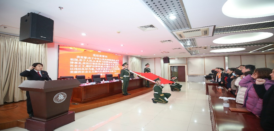 學(xué)生工作處處長梁文學(xué)致辭指出,感謝楊潔庭長在“12.4”這個(gè)特殊的日子里,在百忙之中送法入校。今年國家憲法日的主題為“大力弘揚(yáng)憲法精神,建設(shè)社會(huì)主義法治文化”,旨在深入學(xué)習(xí)宣傳貫徹習(xí)近平法治思想和習(xí)近平文化思想,堅(jiān)定憲法自信,增強(qiáng)憲法意識(shí),讓憲法學(xué)習(xí)宣傳“活起來、動(dòng)起來、落下去”,弘揚(yáng)憲法精神,強(qiáng)化憲法意識(shí),建設(shè)社會(huì)主義法治文化,推動(dòng)中華優(yōu)秀傳統(tǒng)法律文化創(chuàng)造性轉(zhuǎn)化、創(chuàng)新性發(fā)展。努力使尊法學(xué)法守法用法在校園蔚然成風(fēng),為促進(jìn)學(xué)校持續(xù)健康高質(zhì)量發(fā)展提供有力的法治保障。