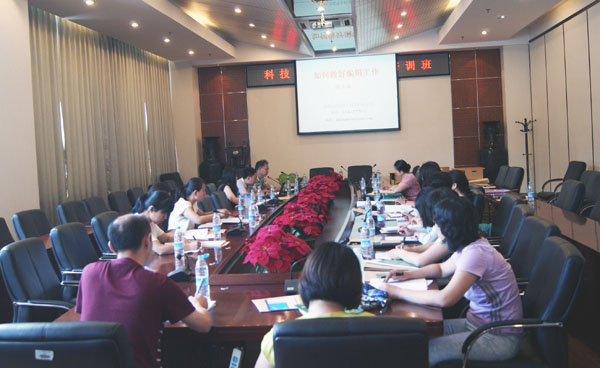 2015年6月19日,學報編輯部在學校第四會議室舉辦了科技期刊編輯業(yè)務培訓班。副校長、學報主編馮海明,科研處處長、學報編輯部主任任鳳國,我校部分學報審稿專家、中英文兼職編輯及學報編輯部、科研處工作人員共22人參加了培訓。