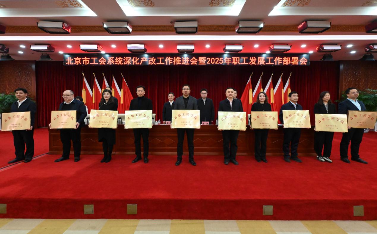3月14日,北京市工會系統深化產改工作推進會暨2025年職工發展工作部署會在北京市職工服務中心召開,會上,為北京工業職業技術學院等2024年新建的10家首都工匠學院進行授牌,我校黨委常委、副院長高世吉受邀參加授牌儀式。