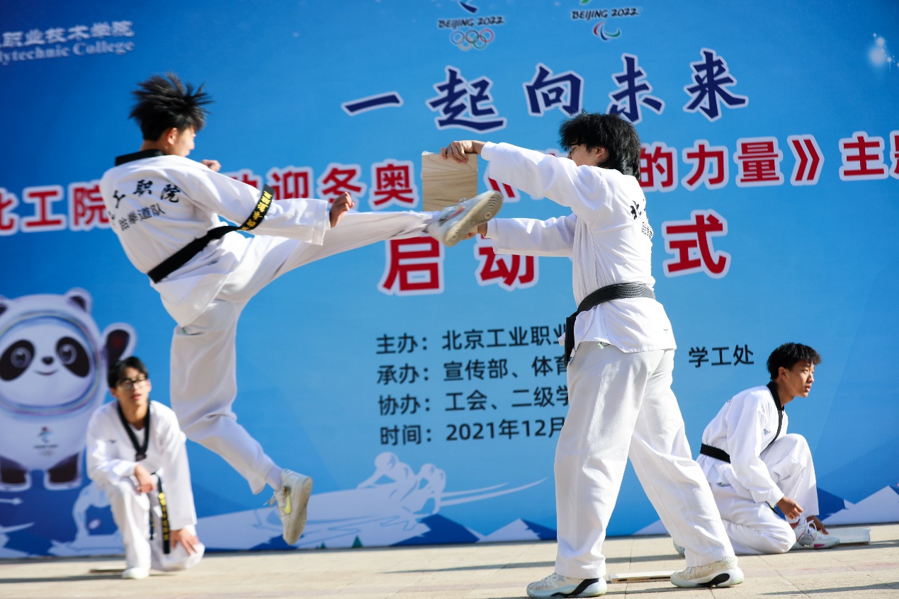 學校合唱團表演北京冬奧主題曲《一起向未來》,武術社團表演太極、套路、器械等中國傳統武術,健美操社團表演街舞、踏板操,毽繩社團表演踢毽、跳繩,輪滑社團表演輪滑、跆拳道社團展示跆拳道。各個社團集中展示學校體育、藝術教育成果,不僅體現了學校對中華民族傳統文化的傳承,更展現出我?!耙泽w育人”的校園體育發展理念。